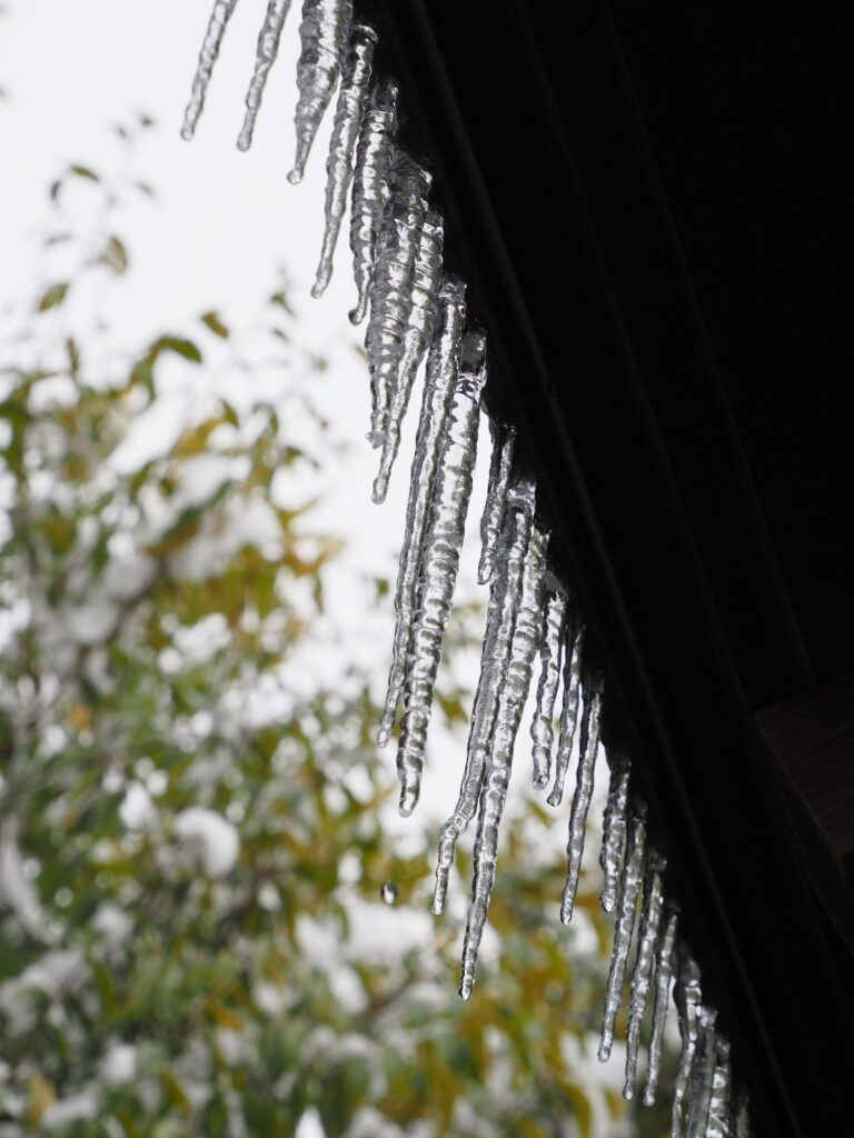 2/8の降雪により雪が積もりひっそりとした観察園内。立派なつららもできていました。